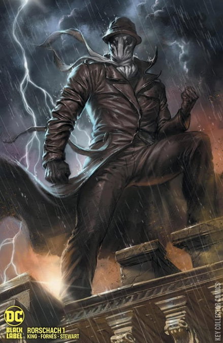 CHAPTER ONE It’s been 35 years since Ozymandias dropped a giant interdimensional squid on New York City, killing thousands and destroying the public’s trust in heroes once and for all. And since that time, one figure in a fedora, mask, and trenchcoat has become a divisive culture icon. So what does it mean when Rorschach reappears as an assassin trying to kill a candidate running against President Robert Redford? Who is the man behind the mask, and why is he acting this way? It’s up to one detective to uncover the true identity of this would-be killer—and it will take him into a web of conspiracies involving alien invasions, disgraced do-gooders, mystic visions, and yes, comic books. Writer Tom King joins forces with artist Jorge Fornés for a new miniseries that explores the mythic qualities of one of the most compelling characters from the bestselling graphic novel of all time, WATCHMEN .
