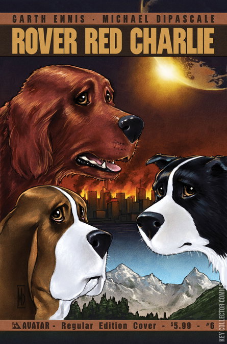 The FINAL issue is a super-sized concluding chapter to the story of Rover, Red, and Charlie. The boys made it from New York to the big splash, but things are far from good. Herman is back for vengeance and as the world falls down around them, these three canine best friends must face his wrath. And even the bonds of friendship can't stop the inevitability of the long sleep. GARTH ENNIS delivers three of his most beloved characters to the end of the world and tells a gripping story through the innocent eyes of dogs. Available with a Regular, Wraparound, and a Dog Days Order Incentive cover by series artist Michael Dipascale.