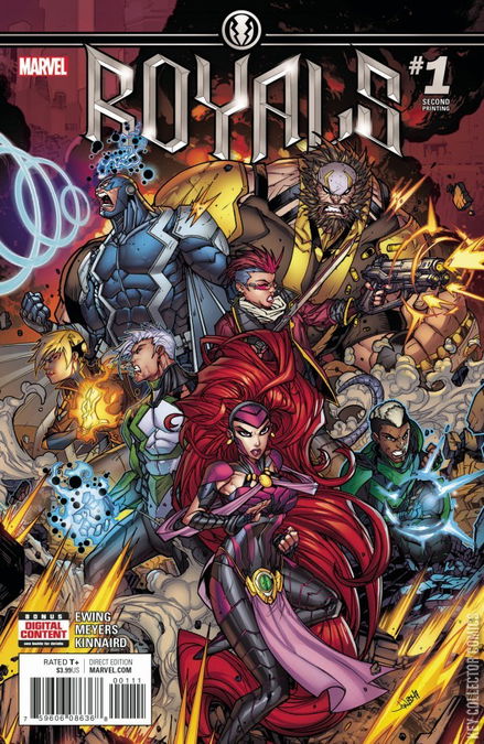 "ANOTHER FUTURE SONG" THE “RESURRXION” OF THE INHUMANS BEGINS! A myth from the future. A quest to the far stars. A legend written across galaxies. Guided by the other-dimensional Kree warrior known as Marvel Boy, the Inhuman Royal Family departs on an odyssey across all creation on search for lost secrets — and the last hope — of their people. Penned by fan-favorite Al Ewing (The Ultimates, New Avengers, Loki: Agent of Asgard) and drawn by the white-hot Jonboy Meyers (Teen Titans, Spawn) , ROYALS is a Marvel-style space epic that takes the Inhuman Royal Family and plunges them into the unknown! The knowledge they seek could change the course of Inhuman destiny, but it cannot be attained without cost...for at the end of days, the Last Inhuman tells the tale of how seven left Earth for the stars...but only six returned.