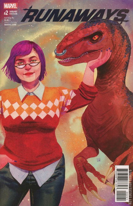 FIND YOUR WAY HOME, PART II The RUNAWAYS are back, but are they ever, ever, ever getting back together? Did Chase and Gert’s love survive their time apart? Have Karolina and Nico’s feelings made their friendship impossible? What emotional land mines lie in wait to DESTROY the Runaways?! And should we be more worried about those, or about the shadowy scientist watching them from a distance? LEGACY #64