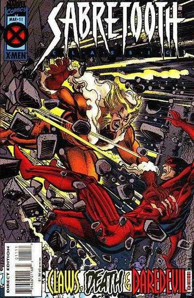 Cover art by Klaus Janson. It Comes With the Claws starring Daredevil, script by Ann Nocenti, pencils by Sal Buscema, inks by Steve Leialoha; DD tries to keep Sabretooth from killing everyone who crosses his path. Original Cover from Daredevil #238, pencils by Art Adams, inks by Klaus Janson. Reprints Daredevil 238. Cover price $1.50.