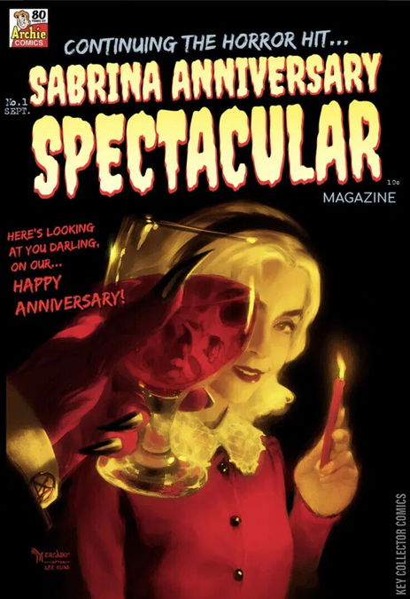We couldn't possibly enter spooky season without celebrating Sabrina as much as possible! And we're kicking off this spectacular with a BRAND NEW Sabrina story that we guarantee will be the greatest Sabrina Halloween story ever! In "Celebration Vexation!" It's Sabrina's birthday and she's celebrating her day-with an epic battle against her nemesis, a BRAND NEW character named AMBER NIGHTSTONE! Amber is an evil witch born at exactly the same time as Sabrina. Only one witch born that day may live amongst mortals, and Amber wants her turn, so she has to erase Sabrina from history! All that plus a collection of classic-style spell-binding stories!