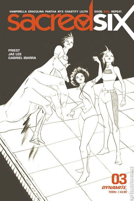 "Numerology," Part Three: Tensions come to a boil as search parties fail to locate two missing boys from the City of Sacred, leading the state police to conduct a house-to-house search of the impoverished town of Ashthorne which enrages both human and supernatural residents. The leader of the enigmatic vampire terrorists known as The Six forges a pact with Lilith while the township gathers to make an appeal to Vampirella to stave off a certain bloodbath if The Six succeed in radicalizing the peaceful vampires of Ashthorne.