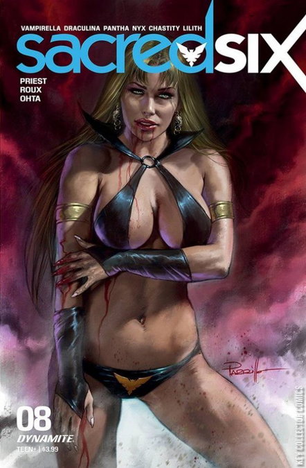 Vampirella is clearly not herself (for reasons we won't spoil here!) and neither is ex-girlfriend Victory, the "new" Draculina who has experienced a genuine religious conversion while spying on the City of Sacred. But can Draculina hide her newfound faith from her cohort of nefarious sisters, which includes a suddenly brutal and demonic Vampirella? Also, continuing this issue: just who is the "half-vampire" agent of chaos called CHASTITY?