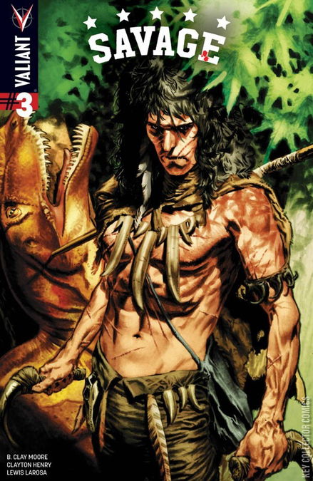 On a mysterious island seemingly untouched by time, order is about to give way to instinct. Stranded with no hope of rescue, the Sauvage family must sacrifice the people they once were...and embrace the animals within! But as prehistoric monsters stalk them at every turn, will their newfound bestialness be enough to ensure survival, or will they be forever trapped at the bottom of the food chain? And when tragedy befalls the once close-knit family, will their last tether to humanity be severed once and for all? Valiant's latest prestige-format epic slashes its way forward as acclaimed writer B. Clay Moore and luminary artists Clayton Henry (HARBINGER WARS) and Lewis LaRosa (BLOODSHOT REBORN) continue the hard-hitting origin to Valiant's next great hero and begin his greatest trial yet!
