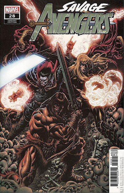 CHAPTER TWENTY-EIGHT: CODA All good things must come to an end. This volume of SAVAGE AVENGERS concludes after an epic 28-chapter run, and it ends as it began: with a good old-fashioned stabbing. CROM WITNESSES YOU, SAVAGE AVENGERS READERS. Thank you for the adventure. FINAL ISSUE