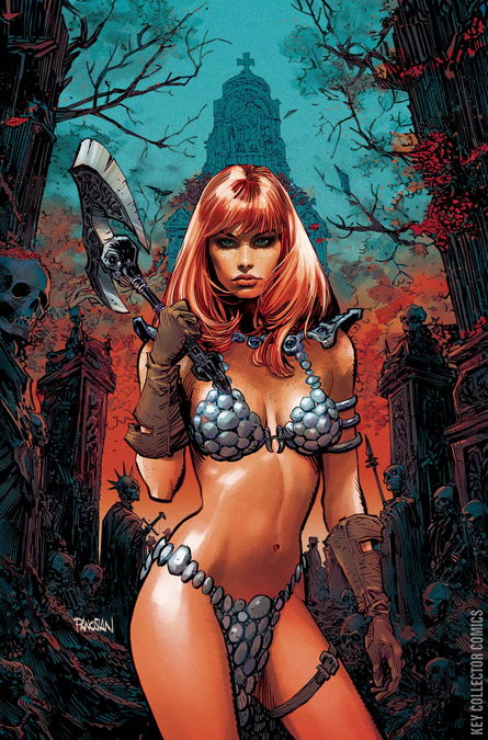 Hyboria's Greatest Warrior continues her journey with the young prince Lucian and his bride Celia, as they seek sanctuary from the desert's bloodthirsty bandits in a nearby castle. Will they be able to fend off the ruthless horde? And what other horrors lurk in the burning sands, just waiting for their chance to strike? Find out in this second issue of Red Sonja's most savage adventure to date, from comics superstars DAN PANOSIAN and ALESSIO PETILLO!
