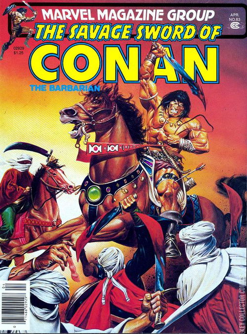 In this issue:"Moat of Blood" by Michael Fleisher, John Buscema, Ernie Chan, Tom Palmer and Bob McLeod"Andrax the Last" by Gil Kane and Rick Parker~"Introducing Chane of the Yellow Hair"~a Red Sonja pin-up by Tony DeZunigaa frontispiece pin-up by Alex TothSummary of "Moat of Blood"Conan`s band of Zaugirs lay ambush to a caravan train carrying royal tribute to Sultan Onan Bahk Galeen. The royal guard are slaughtered in the fight, all but one survivor who claims he wishes to join Conan`s mob of desert brigands - the Cimmerian is suspicious, but reluctantly agrees...In the lavish bedchamber of Onan Bahk Galeen, Sultan of Bahreen Bel Akif, the obese ruler scoffs fruit as he watches a young girl struggle vainly to entertain him - he has ordered her to strip seductively...Irate and bored,...