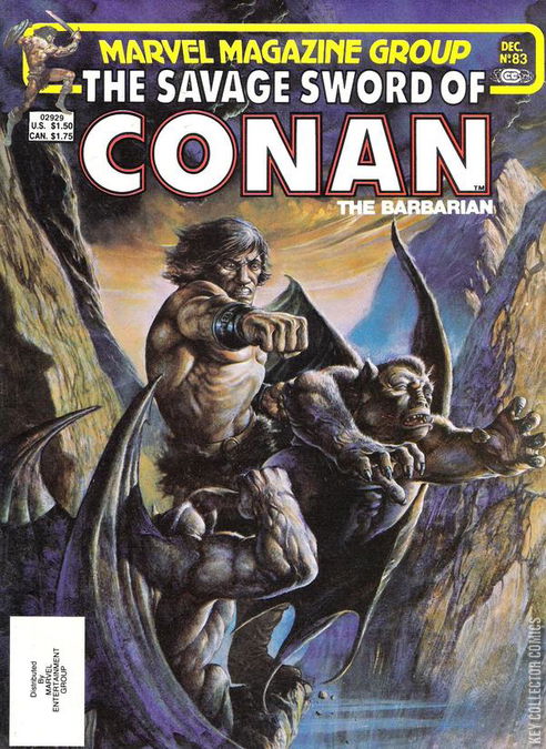 In this issue:"Demon in the Dark!" the second part of the tale by Michael Fleisher and Alfredo Alcala~" Part Two of a classic Hyborian spell-binder pitting our Cimmerian against an unconquerable demon!"~"Hunters and Hunted" by Alan Zelenetz and Mary Wilshire~" A new short story of Conan's youth which brings him face to face with the horrible secret of the wood nymphs!"~"Red Sonja" by Roy Thomas, Esteban Maroto, Neal Adams and Ernie Chan"Red Seas" - a tale of Solomon Kane by Mary Jo Duffy and Danny Bulanadia frontispiece pin-up by Armando Gil