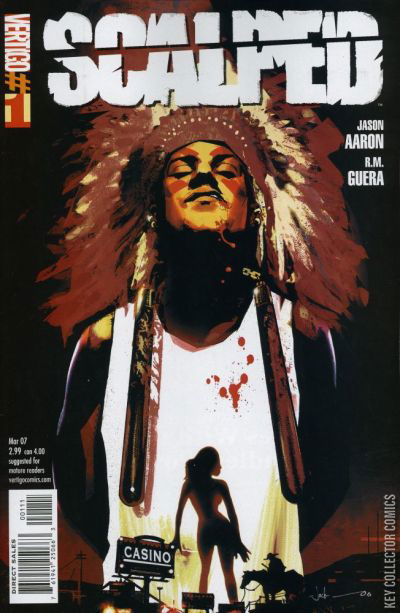 Introducing SCALPED, an all-new monthly series by up-and-coming writer Jason Aaron (THE OTHER SIDE) featuring the gritty art of R.M. Guéra (Heavy Metal). Fifteen years ago, Dashiell "Dash" Bad Horse ran away from a life of abject poverty and utter hopelessness on the Prairie Rose Indian Reservation in hopes of finding something better. Now, he's come back home to find nothing much has changed on "The Rez" — short of a glimmering new casino, and a once-proud people overcome by drugs and organized crime. So is he back to set things right or just get a piece of the action? Also at the center of the storm is Tribal Leader Lincoln Red Crow, a former "Red Power" activist turned burgeoning crime boss who figures that after 100 years of the Lakota being robbed and murdered by the white man, it's now time to return the favor. Now Dash — armed with nothing but a set of nunchucks, a hellbent-for-leather attitude and (at least) one dark secret — must survive a world of gambling, gunfights, G-men, Dawg Soldierz, massacres, meth labs, trashy sex, fry bread, Indian pride, Thunder Beings, the rugged beauty of the Badlands…and even a brutal scalping or two. For a dose of Sopranos-style organized crime drama mixed with current Native American culture, look no further than SCALPED!