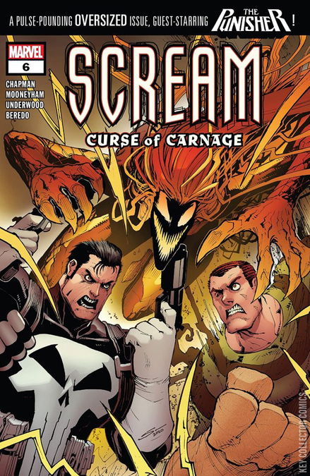 SUFFER THE CHILDREN, PART I With Eddie Brock still missing, Andi Benton and SCREAM are the only symbiotic heroes in New York – and have managed to get themselves caught in the middle of a brutal conflict involving some of the city’s deadliest vigilantes thanks to writer CLAY McLEOD CHAPMAN , joined by symbiote superstar GERARDO SANDOVAL ! But as the heroes and villains of the Marvel Universe have their same familiar squabbles, Andi – and Andi alone – sees something else: a familiar evil from ABSOLUTE CARNAGE rearing her ugly head at the periphery of New York and targeting the city’s most vulnerable. And while the looming threat of symbiote dragons may be sated, Andi still hasn’t quite processed her otherworldly visions of spirals and a king draped in armor... *DIGITAL RELEASE ONLY*