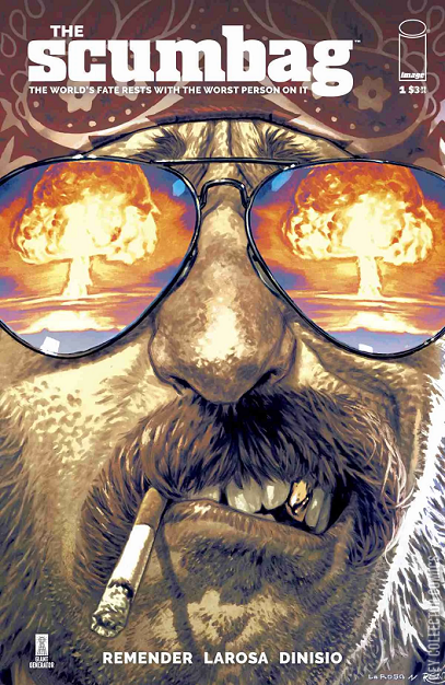 JAZZ APPLE ARMAGEDDON, PART ONE The fate of the world rests in the hands of the worst person on it! RICK REMENDER launches an all-new comedy espionage series, THE SCUMBAG -- the story of Ernie Ray Clementine, a profane, illiterate, drug-addicted biker with a fifth-grade education. He's the only thing standing between us and total Armageddon because this dummy accidentally received a power-imbuing serum, making him the world's most powerful super spy. This new ongoing series will feature a murderers' row of all-star artistic talent rotating each issue. The first issue showcases the stunning work of LEWIS LaROSA, with subsequent chapters and covers by brilliant talents such as ANDREW ROBINSON, ERIC POWELL, TULA LOTAY, WES CRAIG, ROLAND BOSCHI, SIMONE DI MEO, MARGUERITE SAUVAGE, DUNCAN FEGREDO, YANICK PAQUETTE, MIKE McKONE, DAVE JOHNSON, MORENO DINISIO, and many more!
