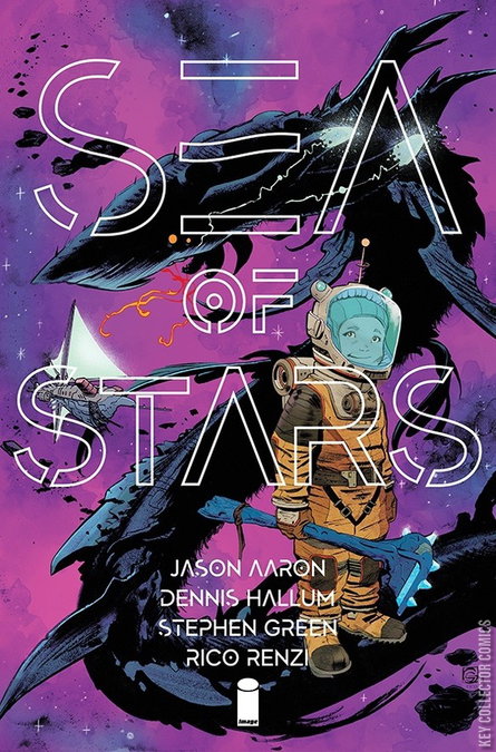 “LOST IN THE WILDS OF HEAVEN,” Part One Being a space trucker sounds like a cool job, but in reality, it can be boring as hell. So when recently widowed Gil gets a long-haul gig across the universe, he figures it’s safe enough to bring his young son Kadyn along for the ride—that is, until their “big rig” gets bitten in half by a gigantic Space Leviathan! Now separated from his son—with a breached suit that’s venting oxygen at an alarming rate—Gil must defy the odds and stay alive long enough to rescue Kadyn. But meanwhile, Kadyn seems to be getting all the help he needs from a talking Space Monkey riding a Space Dolphin… or maybe it’s the strange powers he’s suddenly manifesting?! From the writing duo of JASON AARON (SOUTHERN BASTARDS, Thor) and DENNIS HALLUM (Cloak & Dagger, Vader: Dark Visions), with dazzling art by STEPHEN GREEN (Hellboy and the B.P.R.D.) and cosmic colors by RICO RENZI (Spider-Gwen), comes a brand-new science fiction series with all the scope and heart of the The Neverending Story crossed with the imaginative weirdness of Miyazaki—an intense, galaxy-spanning adventure that’s suitable for fans of all ages!