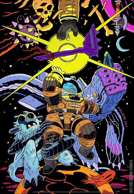 “LOST IN THE WILDS OF HEAVEN,” Part One Being a space trucker sounds like a cool job, but in reality, it can be boring as hell. So when recently widowed Gil gets a long-haul gig across the universe, he figures it’s safe enough to bring his young son Kadyn along for the ride—that is, until their “big rig” gets bitten in half by a gigantic Space Leviathan! Now separated from his son—with a breached suit that’s venting oxygen at an alarming rate—Gil must defy the odds and stay alive long enough to rescue Kadyn. But meanwhile, Kadyn seems to be getting all the help he needs from a talking Space Monkey riding a Space Dolphin… or maybe it’s the strange powers he’s suddenly manifesting?! From the writing duo of JASON AARON (SOUTHERN BASTARDS, Thor) and DENNIS HALLUM (Cloak & Dagger, Vader: Dark Visions), with dazzling art by STEPHEN GREEN (Hellboy and the B.P.R.D.) and cosmic colors by RICO RENZI (Spider-Gwen), comes a brand-new science fiction series with all the scope and heart of the The Neverending Story crossed with the imaginative weirdness of Miyazaki—an intense, galaxy-spanning adventure that’s suitable for fans of all ages!