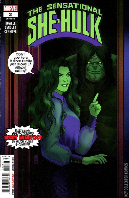 INCREDIBLE AND SENSATIONAL! The Incredible Hulk comes for his cousin, and it's not a social call! Both Hulk books collide! What villain is brave enough to bait the two strongest heroes (one with way better hair) of the Marvel Universe?! PLUS: In honor of Native/Indigenous Heritage Month, the Best Friend of the Marvel Universe and She-Hulk's ex-boyfriend WYATT WINGFOOT makes his triumphant return in a bonus story!