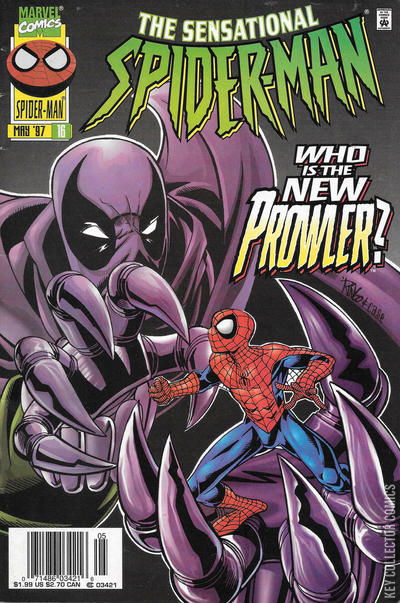 Paralyzed! starring Spider-Man, Prowler [intro; Rick Lawson], Vulture, Hobie Brown, Mindy Brown, J. Jonah Jameson, Billy Walters [intro], Mary Jane Parker, and Anna Watson, script by Todd Dezago, pencils by Mike Wieringo, inks by Rich Case; Spider-Man searches for the new Prowler, who is using a costume stolen from Hobie Brown; The Vulture is searching as well, unaware that the target of his revenge is not the same man that now wears the costume. Brother's Keeper 2, script by Todd Dezago, art by Rich Case; Spider-Man tries to convince DK to stay at Ravencroft