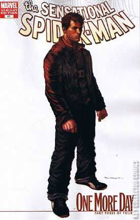 One More Day Part 3 The most-talked about - and controversial - comic event of the year continues, brought to you by J. Michael Straczynski and Joe Quesada! Brace yourself, Spidey fans, after this, nothing will be the same for Peter Parker! The stakes have never been higher. At his darkest hours - and he's had plenty - Peter has always had one shoulder to lean on, one person who'd remind him who he is, who he was, and who he can be. Now he's about to lose that person. What would he do...what would you do, if you only had "One More Day?" Spider-Man: One More Day continued from Friendly Neighborhood Spider-Man #24 . Spider-Man: One More Day continues in Amazing Spider-Man #545 .