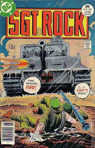 Home / DC / Sgt. Rock / Sgt. Rock #305 DC Released June 1977 Sgt. Rock #305 Add to Collection Want It Synopsis No synopsis available. Issue 4 of 121 Add to Collection Buy it on eBay Buy on eBay Low $2 Mid $5 High $20 Synopsis No synopsis available. Details Series Sgt. Rock Cover Date June 1977 Pages N/A UPC 0709893060006 Cover Price N/A Final Order Cutoff N/A Creators Artist Joe Kubert Price Guide Log in or subscribe to access detailed graded price information and market insights. Log In Subscribe