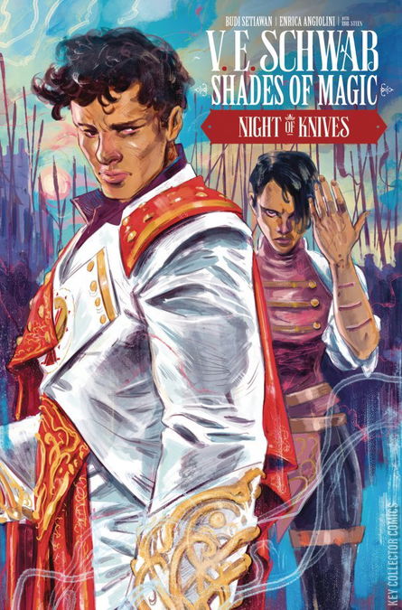 The Night of Knives (4 of 4). Prince Maxim Maresh conquers the deadly trials of the Night of Knives and proves himself to every rogue and villain in Verose... but at what cost? The conclusion to the second story in New York Times bestseller V. E. Schwab's acclaimed Shades of Magic comic, exploring the world of her award-winning fantasy novel series