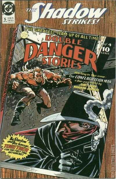Part 1 of a four-part tale that crosses over with issues 17 and 18 of the Doc Savage comic in which the two great pulp magazine heroes, The Shadow and Doc Savage and their respective teams join together to battle evil doers. This issue features "Twin Trails," Part 1 of "The Conflagration Man."