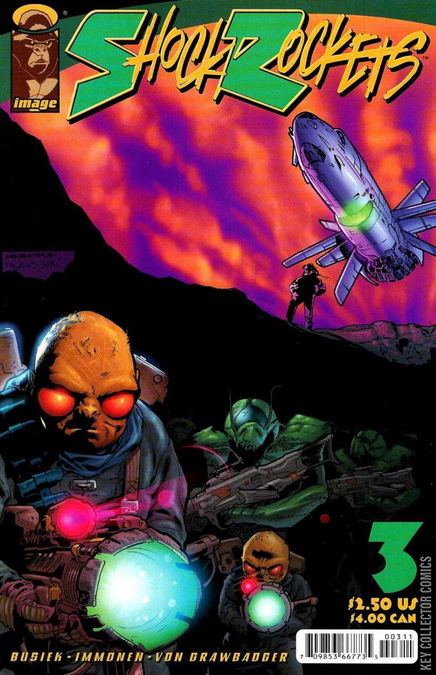 "The Triangle Trade" Is one of the Shockrocket pilots a traitor? The Shockrockets tackle two missions this time -- one against monsters threatening a human outpost, and one, more sinister, against black marketeers trafficking in alien technology. It's an alliance between human criminals, alien refugees, and the inhuman creatures that live beneath the crust of the Earth -- and someone's got to stop it at its source. But one of the Shockrocket pilots may be working with the black marketeers -- and if that's the case, it could spell disaster for all of them. "The Triangle Trade" provides a look at the dark underbelly of the world of Shockrockets -- while providing new insight into the characters of the pilots and the intrigue that surrounds them. And at the speed they fly, there's no room for false moves!