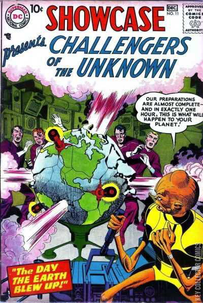 THE DAY THE EARTH BLEW UP! While taking on a mission to investigate weird happenings at an abandoned military outpost in the arctic, the Challengers stumble upon a spaceship controlled by the alien Tyrans who are preparing to use their advanced technology to reverse Earth's gravity and eject all it's people into space to make for a quick takeover. Using hypnosis to get one of the Tyrans to do their bidding, the Challengers escape the alien craft and warn the military of the aliens plot to take over the Earth. With the help of military resources, the Challengers manage to fight off the invasion and destroy the alien ship. Saving the day, the story is covered up so as not to incite public fear, and Professor Haley gets a cold for all his trouble.