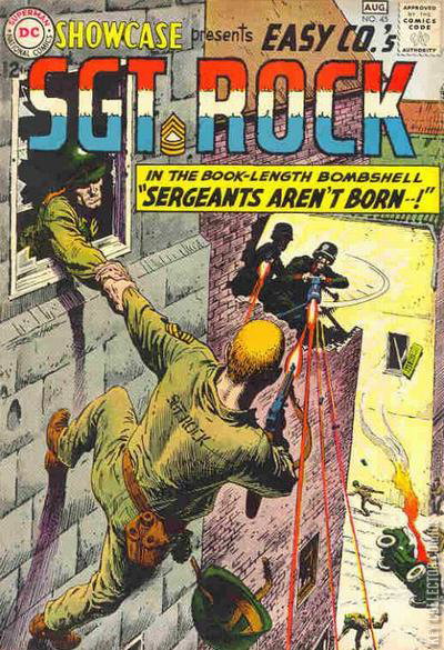 SERGEANTS AREN'T BORN As Sgt. Rock and his troops in Easy Company head into enemy territory, Rock reminisces about how he got to be the sergeant of Easy Company.As part of his first hike in training camp, the recruits went past a bunch of Nazi POWs. The Nazi’s taunted the new recruits, calling them “wooden soldiers.” Rock let their taunts get to him. While walking through camp at night, Rock gets clobbered by the Nazi POW. All the while, the POW taunted Rock as a “wooden soldier.” The POW was eventually pulled off of Rock, but the taunts stuck.Cut to D-Day and the invasion of Normandy. When Private Rock’s boat capsized, the specter of the POW’s taunts forced Rock to push on to shore. Not only does he hit the beach, but he uses a grenade to take out a German bunker. The captain of his unit tells him he’d give him a promotion, but the only way for him to get stripes is for someone else to cash out of theirs. Rock says he would never want to get his stripes that way.As Rock’s career continued, the private found him and his unit pinned down my mortar fire. Again, hounded by the ghost of the POW taunting him as a “wooden soldier,” Rock pushes to the mortar encampment, wrestling with a Nazi while dropping a grenade. Rock takes out the mortal position, saving Easy Company.Next, we find Rock and old pal Bulldozer in a town in France. A sniper nest as picking off U.S. troops, so Rock and ‘Dozer hung out a second story window to chuck a grenade at the nest.Sgt. Rock earns his stripesFinally, we come to a mission where Easy Company needed to take a hill. Rock and the rest assaulted the hill, but took heavy casualties. At the end of the fight, Rock was the only one standing. With all of the troops dead, Rock finally earned his stripes, all the while still haunted by the POW’s “wooden soldier” taunt.Back in the present, Easy Company gets hammered by a Tiger Tank. Urged on by the memory of the taunts, Rock crawls along the ground to get a good position on the tank, and helps...