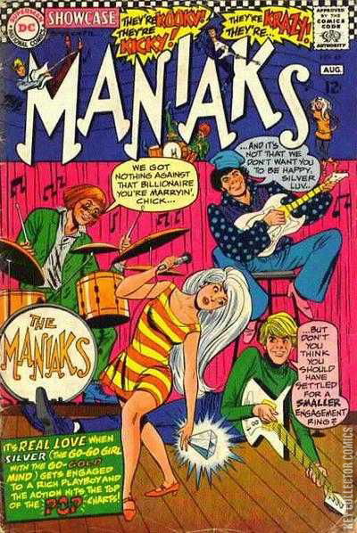 POOR RICHARD'S MANIAK! At a New York City hotel, a police officer sees a jumper on a high ledge. The officer quickly runs inside and heads to a room near where the jumper stands. Inside, the officer finds the room's occupant, Slim Pipdyke, unaware of the situation outside. Together, they lean out the window in an attempt to stop the man. To their surprise, they find Flip, who isn't planning on jumping but is merely taking a walk. Flabbergasted, they give up trying to talk Flip inside. Unexpectedly, Flip jumps off the ledge and bounces off a trampoline below held out by a group of firemen. He then quickly scrambles back up the side of the building. Moments later, he climbs in a window to find the rest of the Maniaks preparing to leave for their concert. Later, the band is set to play at Shea Stadium but are surprised to find it nearly empty. It turns out that one man has bought out the whole show for himself and a couple friends. After the performance, Jangle realizes he recognizes the men in the audience. He introduces his band-mates to his former schoolmates, strongman Thomas Sampson and brainiac Harrison H. Harrison. Silver is uninterested until Jangle introduces Richard Pipdyke XIV, the son of the world's richest man. The old pals take the Maniaks out for a night on the town. Following a staggering display of wealth, the band is dropped back at their hotel for the night. The next morning, the quartet is again picked up by Pipdyke who flies them to his mansion for a big party. By the conclusion of the party, Silver and Richard Pipdyke have become engaged. The remaining Maniaks are at first very pleased by the engagement because now the stingy Silver won't be in charge of the band's finances. They quickly decide that a marriage based on wealth will lead to Silver being unhappy and vow to break up the couple. They meet with an actress and pay her to disrupt the wedding by claiming Pipdyke had already married and deserted her. The wedding progresses but the moment the Maniaks expected a disruption passes without incident. The vows are read until Silver shouts, "No!" It turns out, she could take Pipdyke for richer but couldn't live with poorer. Just then, the actress the boys hired arrives. She skipped the wedding to bet on a horse called Dickie the Pip and wants to give them their cut of the winnings. It isn't a sad day for Richard Pipdyke either as it turns out he decides he can't forsake all other women for Silver and surrounds himself with beautiful women.