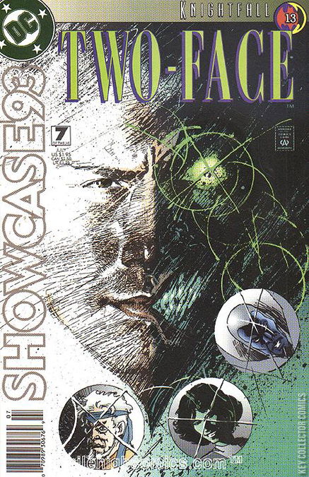 KNIGHTFALL: WHO RULES THE NIGHT, PART 13 - 2 FACE - DOUBLE CROSS Continued from Detective Comics #664 -- Part 12: Who Rules the Night Continues in Showcase '93 #8 -- Part 14: 2-Face Part 2: Bad Judgement THE KOBRA KRONICLES PART 2 - ACUTE SCHIZOPHRENIA PARANOIA BLUES IMAGE IS EVERYTHING In a tale taking place three weeks before his back is broken, Batman tracks the villainous Two-Face in a tale illustrated by Klaus Janson! Plus: Deathstroke the Terminator and Peacemaker continue their war against Kobra and a new tale featuring the brother and sister team of Jade and Obsidian.