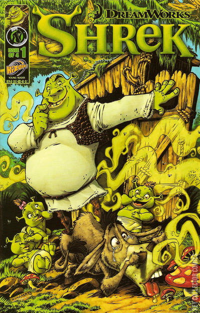 Shrek and Donkey are constantly fighting over the toy surprises in the cereal box. Thanks to a contest and buying the millionth box of 'Ye Olde Crunchypants Cereal,' Shrek and Donkey are off to visit the Cereal Factory - let the adventure begin! This issue also features a special 4-page back-up story by comic book legend Scott Shaw!