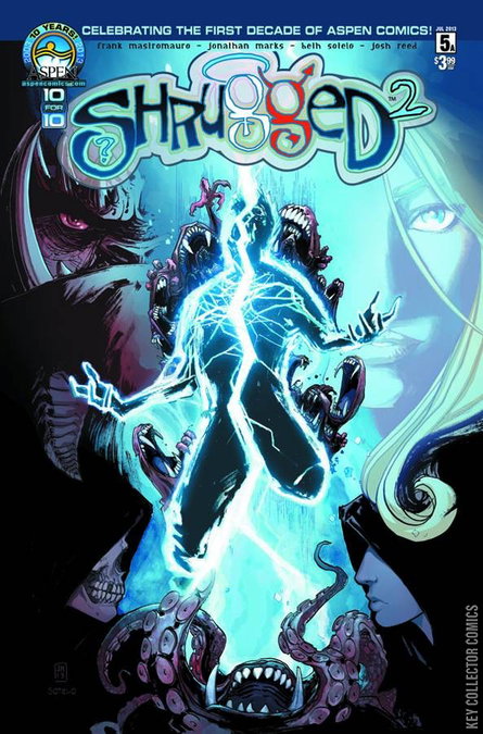 The long awaited return of SHRUGGED continues! As Theo struggles to overcome his perilous journey, Ange and Dev continue to fight against Slive and his nightmarish creatures. However, being completely overrun and outnumbered, their hope for survival grows dim with each passing moment. The end is near, but an unlikely ally may prove to tip the balance of power in their favor! Created by Michael Turner and Frank Mastromauro, with illustrations by newcomer Jonathan Marks and colors by Beth Sotelo, make sure to listen to the voices inside your head and pick up the newest issue of SHRUGGED today!