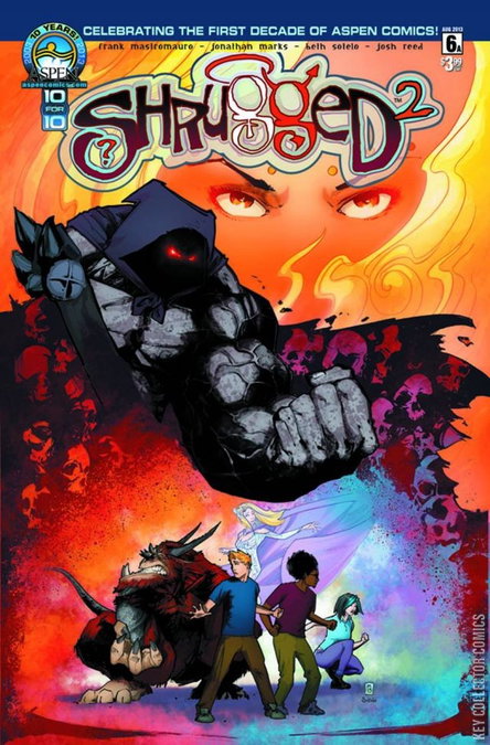 SHRUGGED reaches its explosive finale! It's a double-dose of Shrugged as Ember's master plan reaches full effect! Perspecta has fallen and earth is on her short list to conquer next. However, Theo, along with Ange, Dev and the rest of the gang, are still alive and kicking, and they're not going to let Ember win that easily! It's the world shaking final issue to the second volume of SHRUGGED, and you have a front row seat!