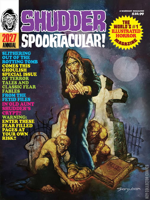 The Shudder 2027 Annual Spooktacular recreates the iconic Warren horror annuals popular in the 60s and 70s by emulating Warrens early page layouts. This Annual edition collects of the best stories from the early years of Shudder Magazine in a perfect bound collectors edition. Each issue of Shudder is a highly collectible instant classic! Writers: Don Glut, J.W. Ford, Lou Mougin, Bambos Georgiou, Artie Godwin Artists: Sanjulian, Nik Poliwko, Reno Maniquis, Mikael Bergkvist, Santos Zaballos, Carlos Lamani