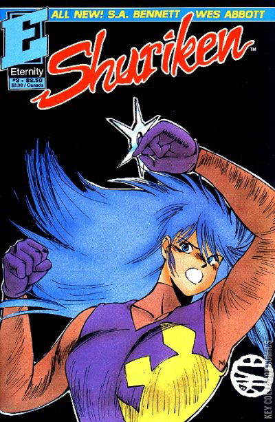 Slate's back, but this time has taken on the identity of Megumo the She-Spider. Fearing for his life, Morgan begs Shuriken to come and defend him from this new and even deadlier Megumo...he's hoping to kill two birds with one stone. Written by S.A. Bennett, with art by Wes Abbott. Cover price $2.50.