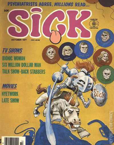 Home / Charlton / Sick / Sick #117 Charlton Released October 1977 Sick #117 Add to Collection Want It Synopsis No synopsis available. Add to Collection Buy it on eBay Buy on eBay Low $2 Mid $10 High $30 Synopsis No synopsis available. Details Series Sick Cover Date October 1977 Pages 52 UPC N/A Cover Price $0.50 Final Order Cutoff N/A Creators Cover Artist Jack Sparling Price Guide Log in or subscribe to access detailed graded price information and market insights. Log In Subscribe
