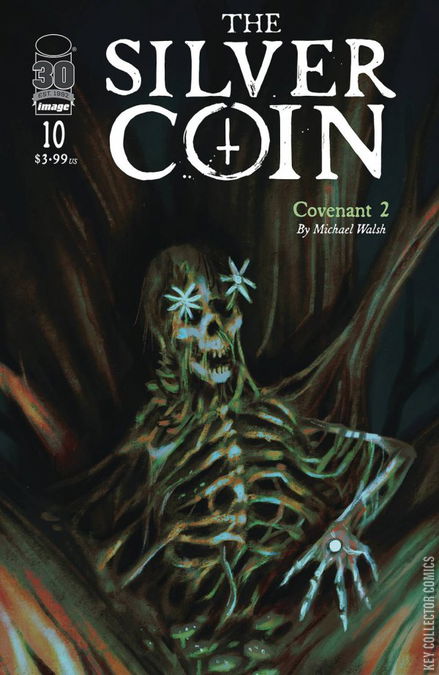 Next in THE SILVER COIN, the hit horror anthology from VITA AYALA, JOSHUA WILLIAMSON, RAM V, MATTHEW ROSENBERG, and MICHAEL WALSH, comes a sequel 300 years in the making. Audrey is a high schooler with an unusual ability who's drawn to the occult. When she encounters the coin, she conducts a ritual meant to break its curse but instead summons something darker still. The coin's mystery deepens in part two of "Covenant."