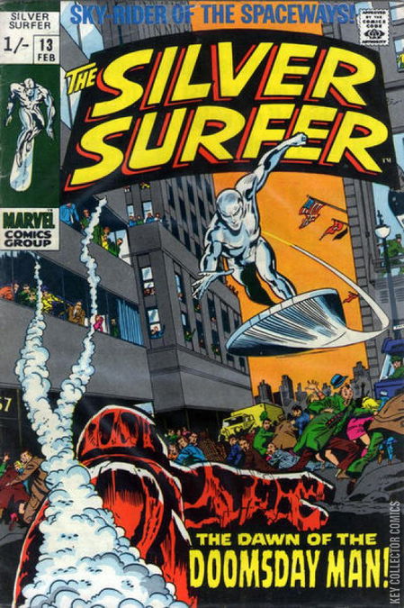 The Silver Surfer reads the newspaper that tells of a United Nations meeting against the threat of the Doomsday Man. He travels to the UN building and speaks with the delegates. He has no patience for their squabbling and takes the Doomsday Man's creator Dr. Krontron to the island where he is held.They gain access to the building in which the Doomsday Man is encased. Inside, the Doomsday Man moves and thinks on his own and attacks the Surfer. He then takes control of a experimental Cobalt Bomb that is also housed in the structure and heads toward the United States mainland.It is soon revealed that the doctor has been lying and has planned for Doomsday Man to escape with the weapon. Since he is the creator he is the only one able to stop him and plans to make it rich by offering his services.The Surfer distracts Doomsday Man and he releases the weapon. The Surfer creates a chasm to Earth's core for the robot to fall in. Before it falls, it struggles and kills its maker. It then plunges to the core of the Earth.
