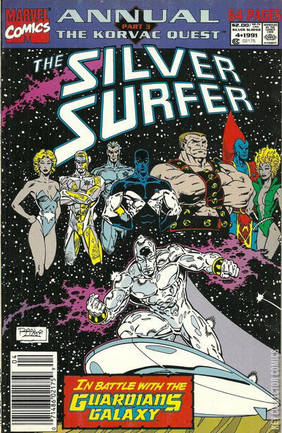 The Surfer--with the power of the Quantum Bands-battles the Guardians of the Galaxy. Plus, Galactus retells the story of Silver Surfer's creation.