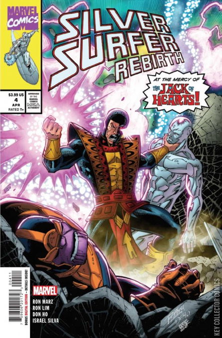 OLD FRIENDS, OLD FOES JACK’S BACK! Surfer and Thanos are getting closer to retrieving the Reality Gem…but not if Jack of Hearts has anything to say about it! But who…or what…is possessing Jack to attack his silver friend?!