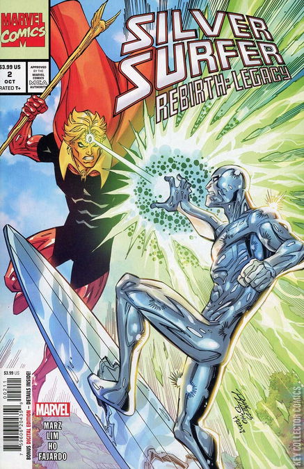 THE SILVER SURFER VS. ADAM WARLOCK! Surfer has been framed for the apparent death of Genis-Vell! Can the Surfer survive long enough to clear his name to the Infinity Watch? And what actually happened to Genis?! Rated T+
