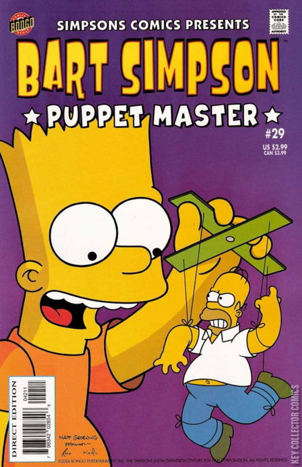 Springfield's merry mischief-maker, Bart Simpson, switches places with Ralph Wiggum on "Take Your Son To Work Day" with surprising and potentially life- threatening results. Then, Bart gets a new roommate when he moves into the retirement home with Grampa. Also, Bart and Nelson start their own pirate radio station, and it is not long before radio talk show host Birch Barlow's ratings begin to plummet, prompting a "no holds barred" battle over the airwaves. 1. Bart Cops Out (written by James W. Bates) 2. If You Can't Wiggum, Join 'Em! (Ralph and Chief Wiggum / written by Tom Peyer) 3. Worker And Parasite! (Itchy & Scratchy / written by Jesse McCann) 4. K-Bart (written by Eric Rogers)