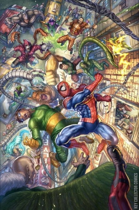DOCTOR OCTOPUS IS BACK! AND THE SINISTER WAR HAS BEGUN! Ock’s got a new Sinister Six and if you think he’s thought big in the past, think again. What Ock DOESN’T know is that the VULTURE has a sextet of his own: THE SAVAGE SIX! It’s an all-out WAR between two of the greatest villains in the Marvel Universe, and the only person they hate more than each other is SPIDER-MAN! Spidey’s in deep trouble with the toughest battle that he’s ever faced. Nick Spencer and Mark Bagley team up for this epic Spider-Man story guaranteed to shock readers everywhere!