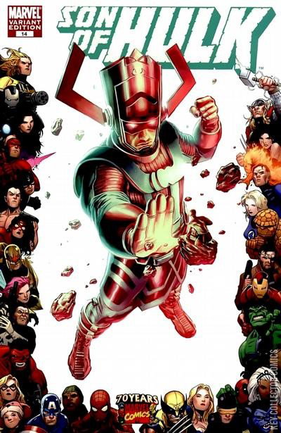 The Planet Sakaar may be no more, but the trials of the Son of Hulk are far from ended. As the Sakaarian survivors struggle to carry on, the Son of Hulk has only one goal in mind: revenge. He has led his people to another planet rich with the mystic Old Power…a planet he has laid claim to, whether its native population likes it or not. The Son of Hulk will claim his vengeance, even if it means laying waste to an innocent populace to do it. But even if he can bend this planet under his will, can he possibly become a match for Galactus, the devourer of worlds?