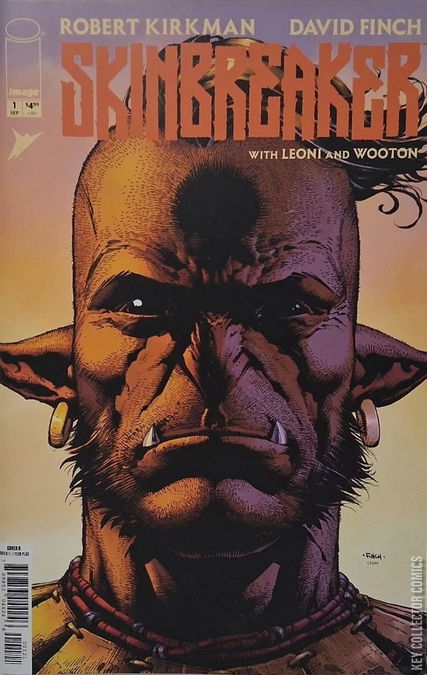 SERIES PREMIERE FOR FANS OF INVINCIBLE UNIVERSE: BATTLE BEAST COMES YOUR NEW FAVORITE SERIES! ** The dream team of ROBERT KIRKMAN** (THE WALKING DEAD_, _INVINCIBLE) and superstar artist DAVID FINCH (Batman, New Avengers) present a visionary action epic unlike anything you’ve ever seen. Enor has led his tribe for many seasons, but his time as Chieftan is coming to an end. He wields the mighty SKINBREAKER, but at his age, he can barely lift it. Will Enor’s reluctant heir, Anok, take over before their world falls to ruin? As a bloody power struggle begins, an even bigger threat lurks in the darkness beyond their village. SKINBREAKER tells the story of a people on the verge of collapse and their fight for survival as the many threats they face close in for the kill.
