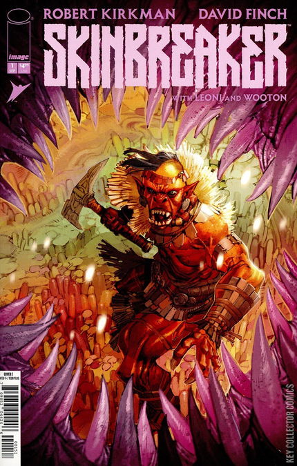 SERIES PREMIERE FOR FANS OF INVINCIBLE UNIVERSE: BATTLE BEAST COMES YOUR NEW FAVORITE SERIES! ** The dream team of ROBERT KIRKMAN** (THE WALKING DEAD_, _INVINCIBLE) and superstar artist DAVID FINCH (Batman, New Avengers) present a visionary action epic unlike anything you’ve ever seen. Enor has led his tribe for many seasons, but his time as Chieftan is coming to an end. He wields the mighty SKINBREAKER, but at his age, he can barely lift it. Will Enor’s reluctant heir, Anok, take over before their world falls to ruin? As a bloody power struggle begins, an even bigger threat lurks in the darkness beyond their village. SKINBREAKER tells the story of a people on the verge of collapse and their fight for survival as the many threats they face close in for the kill.