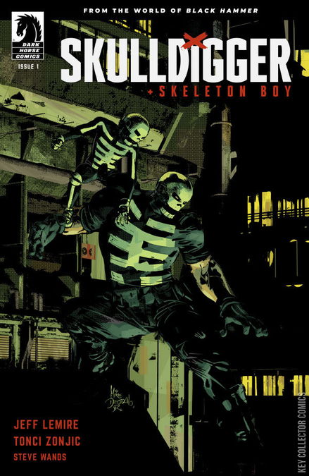 Teased in The World of Black Hammer Encyclopedia, this tale of dark tragedy finds Spiral City trapped in a vicious cycle of crime, corruption, and violence. With the heart of the city at stake, a vigilante rises in Skulldigger. However, when the nefarious Grimjim escapes from prison, will Skulldigger and his ward, Skeleton Boy, be enough to save Spiral City?