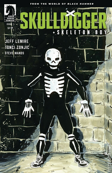 Teased in The World of Black Hammer Encyclopedia, this tale of dark tragedy finds Spiral City trapped in a vicious cycle of crime, corruption, and violence. With the heart of the city at stake, a vigilante rises in Skulldigger. However, when the nefarious Grimjim escapes from prison, will Skulldigger and his ward, Skeleton Boy, be enough to save Spiral City?