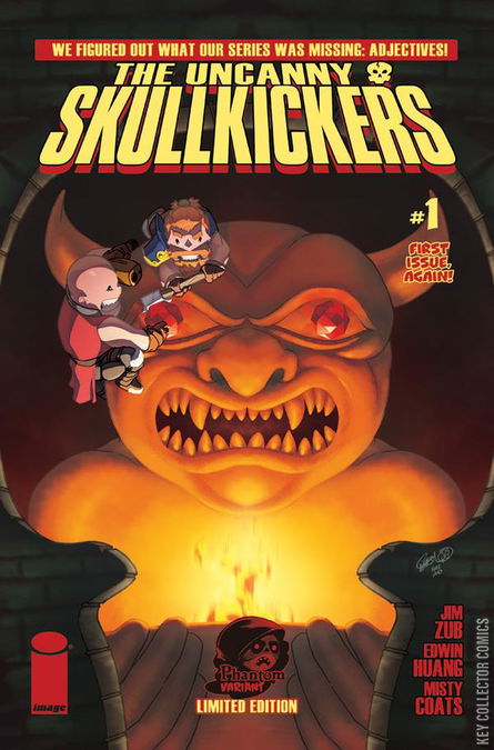 The UNCANNY SKULLKICKERS: Two hard-headed mercenaries kill monsters and cause havoc in their search for money, fame and adventure! A bold new direction! A perfect jumping-on point! A newly added adjective! Our nineteeth issue, but also a new issue #1! It's all here, people! Don't make us use more exclamation marks!!