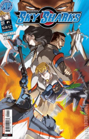 This is Sky Sharks! High-flying, high-octane, and high adventure in a 1940s where Hitler got his butt kicked to the curb before he could do jack! This is Sky Sharks! A hand-picked team of aerial experts for hire—but only to those in need. The team finds trouble right off the deck, though, when commander Frank Derringer accepts a food-shipment escort mission from top client Prince Ahmed. Thanks to Derringer's loose-cannon hot shot Jason Mars, the deal turns out to be more than they bargained for! The team must retreat from the Middle East and refuel at the worst possible supply point: the floating fortress known as War-Island! From the get-go, this gun-blazing action/adventure fills you full of daylight and makes the Rocketeer bust one from its awesomeness! The art is splendiforously rendered by the incomparable Fred "Gold Digger" Perry with a story woven from the threads of Amazing by Wes Hartman (Pirates vs. Ninjas, I Hunt Monsters)! Aim high and score a direct hit with Sky Sharks!