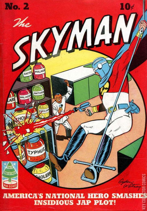 Home / Columbia / Skyman / Skyman #2 Columbia Released November 1942 Skyman #2 Add to Collection Want It Synopsis No synopsis available. Issue 2 of 4 Add to Collection Buy it on eBay Buy on eBay Low $65 Mid $190 High $630 Synopsis No synopsis available. Details Series Skyman Cover Date November 1942 Pages 68 UPC N/A Cover Price $0.10 Final Order Cutoff N/A Creators Writer Gardner Fox Artist Ogden Whitney Price Guide Log in or subscribe to access detailed graded price information and market insights. Log In Subscribe